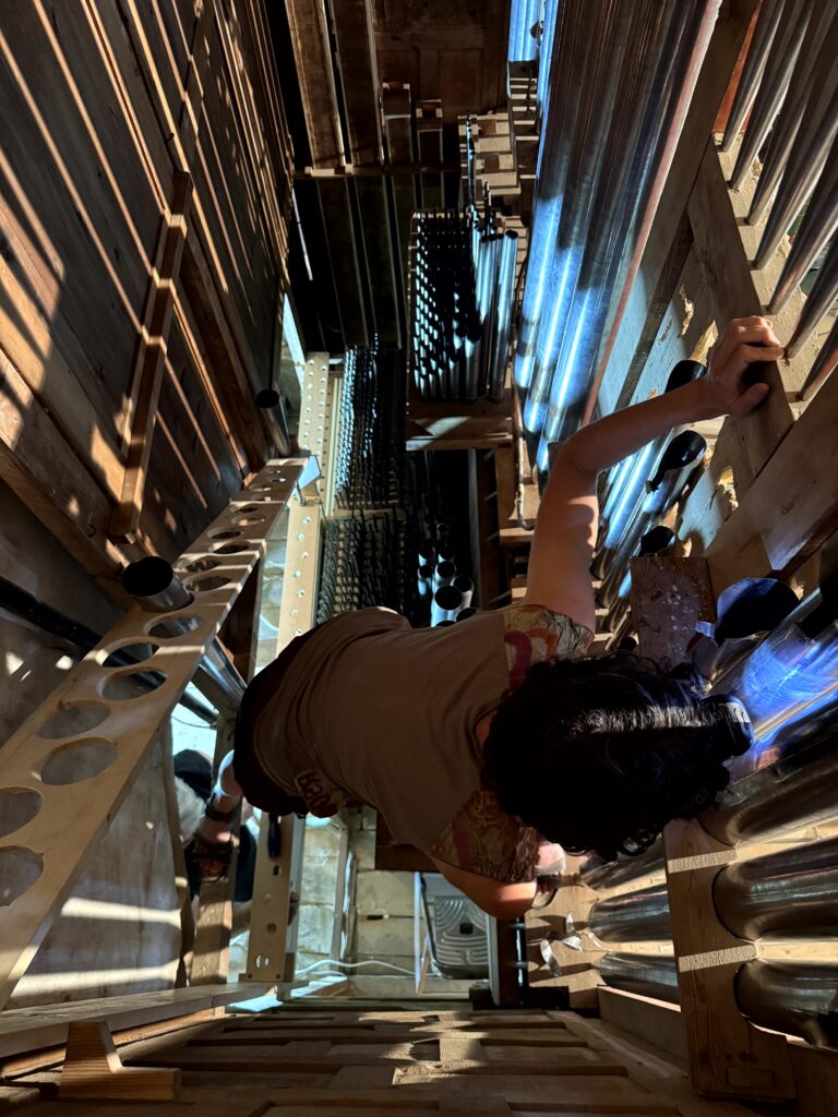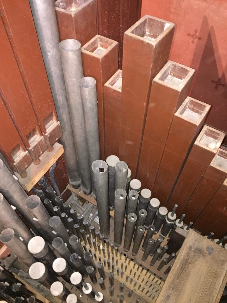 L’orgue est une machine complexe impliquant de l’air, des mécaniques (pour les claviers et pour la sélection des jeux), des tuyaux etc…